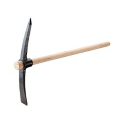 La pioche est un outil composé de deux pièces : une pièce de travail en acier fixée par l’intermédiaire d’un œil à un manche en bois dur. Destinée au terrassement, à l’agriculture ou à l’extraction, elle sert à creuser, casser des sols durs ou de la pierre.